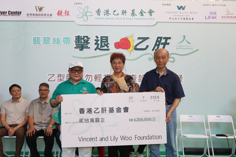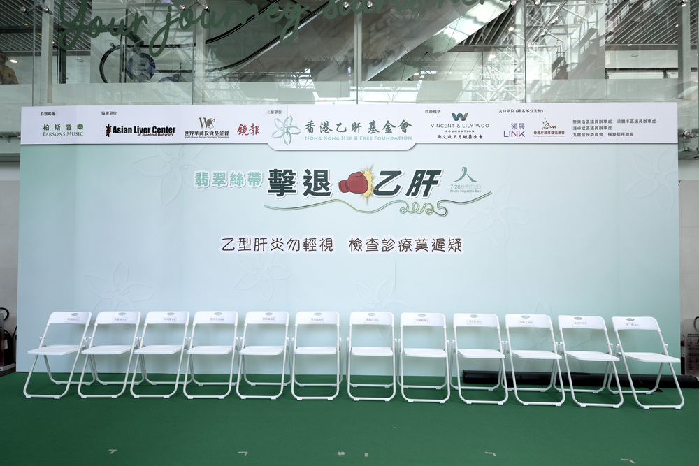 「翡翠絲帶擊退乙肝2025」活動已在2025年7月27日於樂富廣場舉行,旨在提高公眾對乙型肝炎的認識,並推廣乙肝檢測及病性跟進的重要性,更邀請了多位社會各界人士共同參與。翡翠絲帶的顏色不僅是香港乙肝基金的專用顏色,翡翠絲帶形取漢字「人」,意寓人人互愛;色取美玉翡翠,意寓平安吉祥,意在鼓舞全世界人民共同抗擊乙型肝炎的心聲。